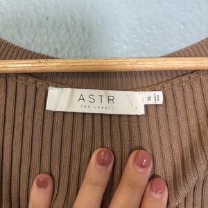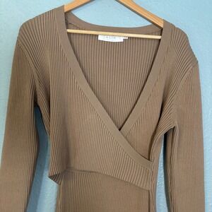 ASTR The Label Women's Ribbed Knit Long Sleeve Midi Wrap Dress Camel Size XL