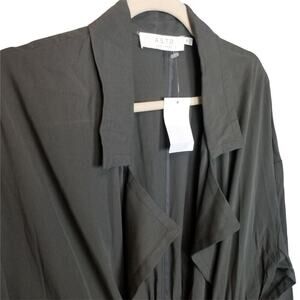 ASTR The Label Womens Tie Front Duster Trench Coat Sz M Relaxed Minimalist Olive