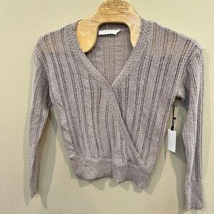 ASTR The Label Womes Sweaterl Large Lavender Wrap Front Pointelle Knit V-Neck