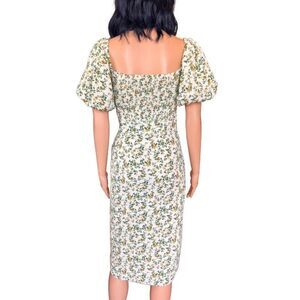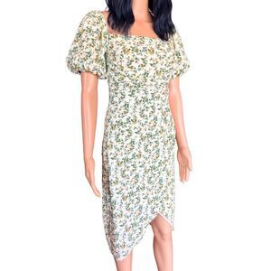 ASTR The Label Cream Green Floral Knee Length Puff Sleeve Dress Size Small