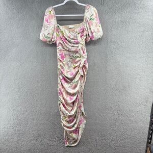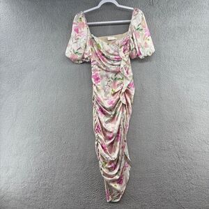 ASTR The Label EMMA FLORAL RUCHED BUBBLE SLEEVE MIDI DRESS XS