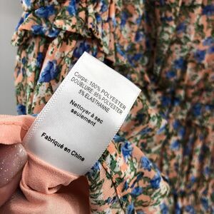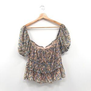 ASTR The Label Ruffle Ruched Short Sleeve Top PEACH BLUE DITSY M