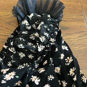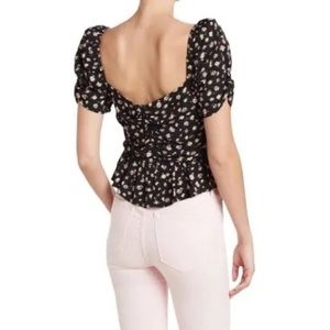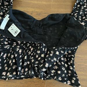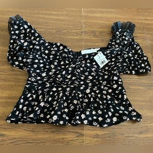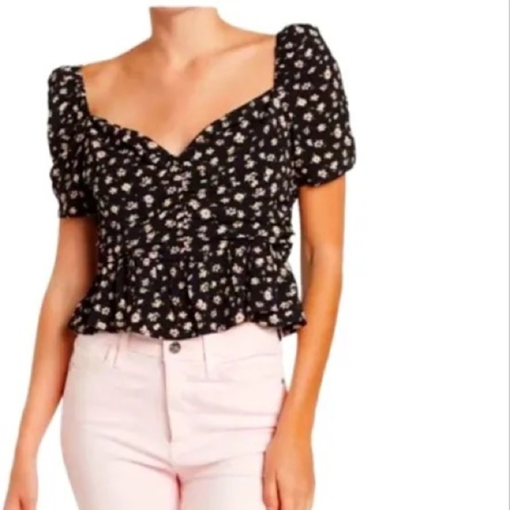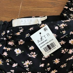 ASTR Top. Black Pink Ditsy. Large. Ruffled Short Sleeves. New With Tags.