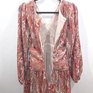 ASTR V-Neck Plisse Wrap Mini Dress Size Small in Coral Floral NWT