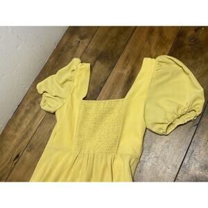 ASTR Wendy Puff Sleeve Mini Dress Yellow Flutter Hem Medium