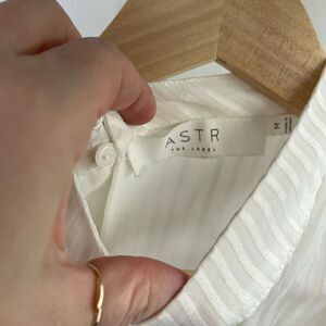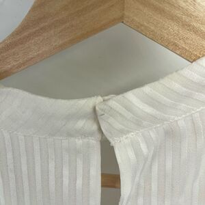 ASTR Women Casual Blouse Raffled Blouse Deep Neckline Pinstripes White Size Medium