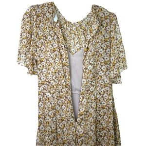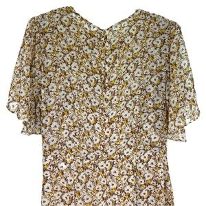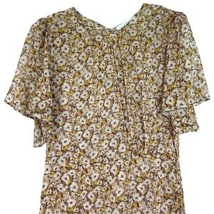 ASTR - Women’s 'Flutter Sleeve Maxi Dress' in Mustard Ditsy Floral- Yellow Large