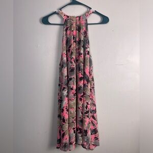 ASTR Women's Gray Pink Floral Halter Neck Sleeveless A-line Mini Dress Size Small