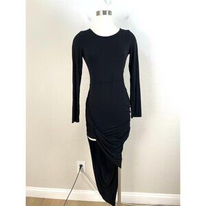ASTR Womens Medium Black Asymmetrical Hem Hi Low Jersey Bodycon Dress Stretch