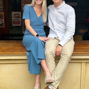 ASTR Wrap Front Wide Leg Jumpsuit in Steel Blue