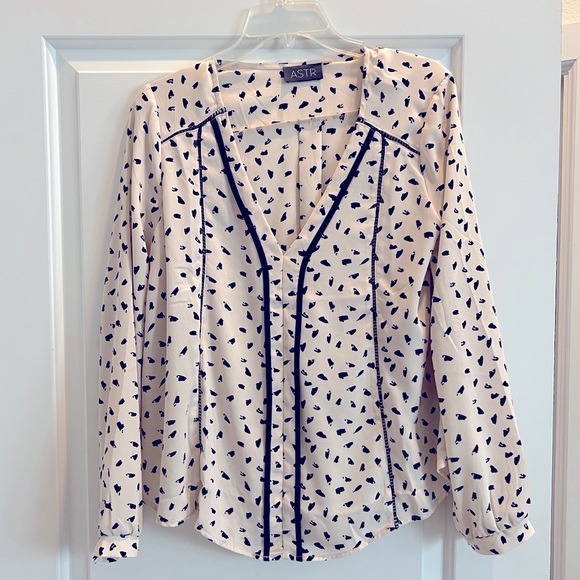 Tan ASTR blouse with black design. Long sleeved. Only worn a few times. Size medium.