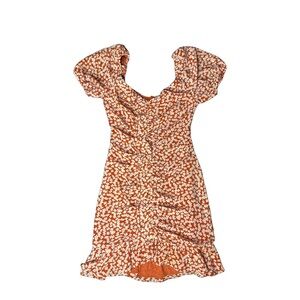 Soft shirring gathers into frilly ruffles fluttering from neck to hem on this curve-hugging floral minidress.