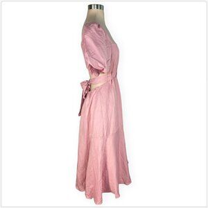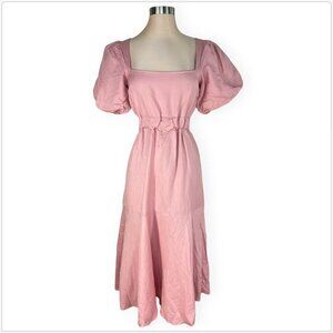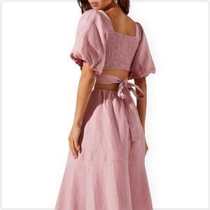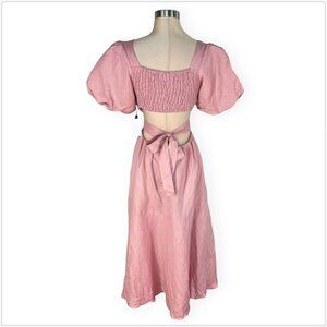 ASTR the Label Angeles Pink Puff Sleeve Cutout Midi Linen Blend Dress NWT NEW S