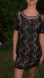 Black lace mesh bodycon mini dress. Illusion neckline with sheer mesh around neck, exposed zipper up back, floral lace overlay, short sleeves, and fully lined.