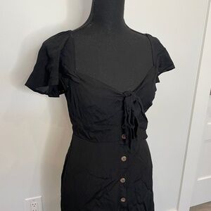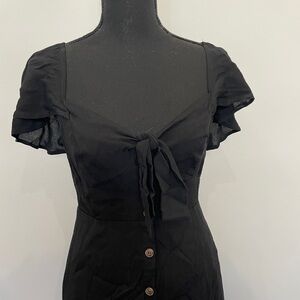 NWT - ASTR the Label Black Rachelle Tie Front Sweetheart Ruffle Sleeve Dress