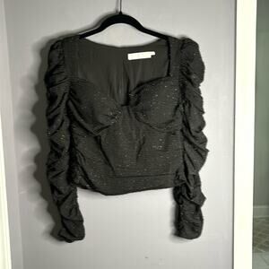 ASTR the Label Black Sparkly Top Ruching Detail Sweetheart Neck Size Medium