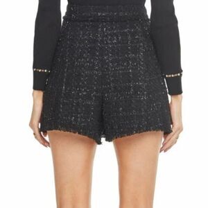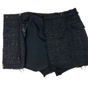 Astr the Label Cece black tweed mini skort with metallic silver threating and frayed hem detail. This adorable dark academia skirt with built in shorts features a wrap style with 4 front buttons and interior button and zip closure. Women's size XS Extra Small, measurements pictured. Excellent used condition.