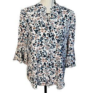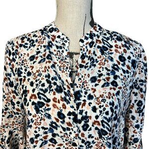 ASTR the Label Blouse Blue Multi Leopard Print Long Sleeves Size S Button Front
