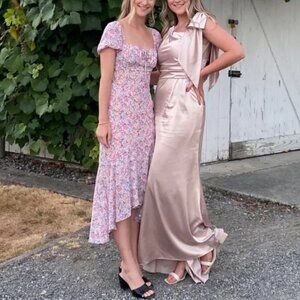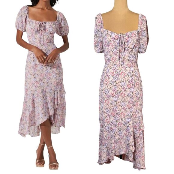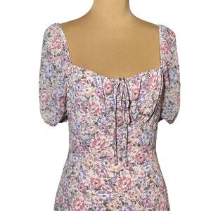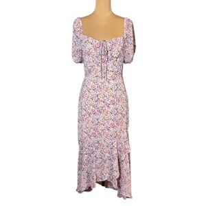 ASTR the Label Bow Tie Ruffle Midi Dress SZ M Pink Purple Floral Milkmaid