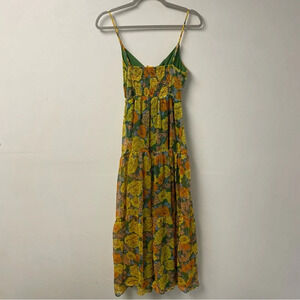 ASTR the Label Brandy Floral-Print Cutout Maxi Dress Yellow Green Size Small