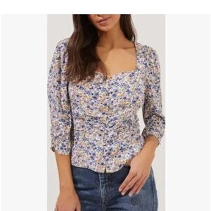 ASTR the Label Button Front Ruched Floral Top SIZE L