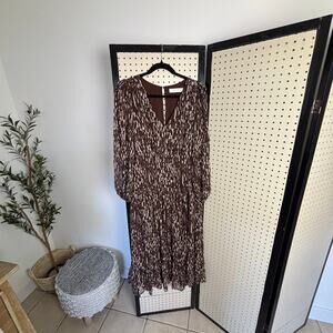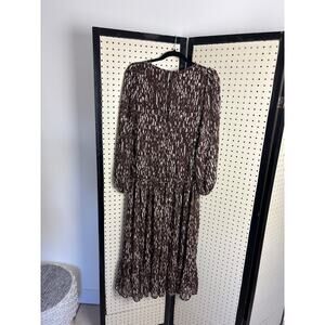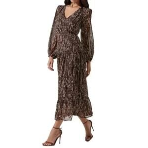 ASTR the Label Chiffon Tiered Maxi Dress Brown Multi S — Balloon Sleeve w/ Slit