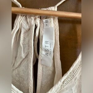 ASTR the Label Cream Colored Embroidered Tie Back Tassel Tank