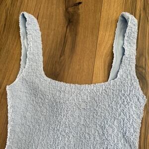 ASTR the Label Crisanta Midi Dress Size XS Textured Crinkle Stretch Light Blue