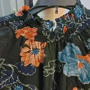 ASTR the Label Eva Romper Dark Green Floral Jumper Mock Neck Ruffle Hem