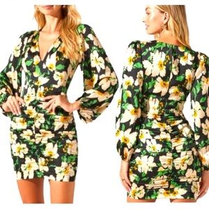ASTR the Label Floral Ruched Mini Dress Puff Sleeve Size Small