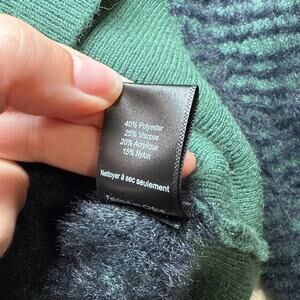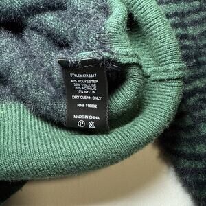 ASTR the Label Fuzzy Green Black Striped Pullover V Neck Sweater Womens Sz M NEW