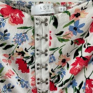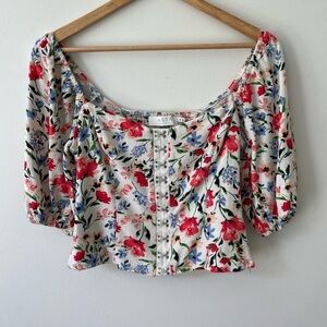 ASTR the Label Hook and Eye Square Neck Floral Top Red White Blue Floral Crop