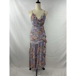 ASTR the Label Kiana Dress Light Purple Floral Small Ruffles Ruched Asymmetrical Maxi Wedding Guest Cocktail