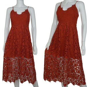 ASTR the Label Lace A-Line Midi Dress Rust Sleeveless Women's Small