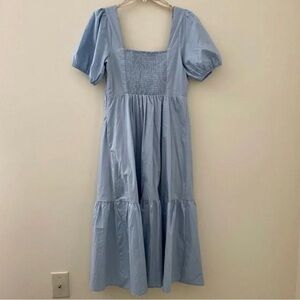 ASTR the Label Light Blue Poplin Puff Sleeve Tiered Midi Dress NWT size M