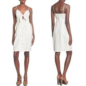 ASTR the Label sleeveless button front tie dress key hole pockets straps linen blend