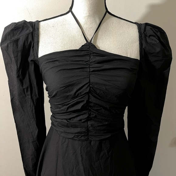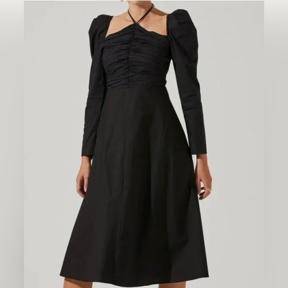 ASTR the Label Long Puff Sleeve Tie Neck Cotton Dress in Black Sz. Small