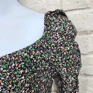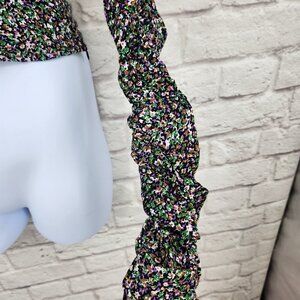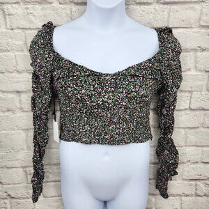 ASTR the Label Long Ruched Sleeve Livie Top in black green Ditsy Size Large NEW
