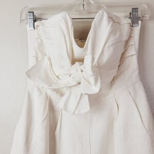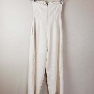 ASTR the Label Mara Tie Front Strapless Jumpsuit Linen Cream Women's Small