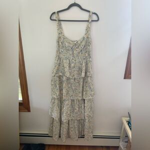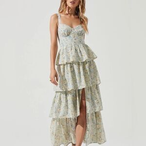 Flirty tiers and a corset style top shape this playful floral maxi dress by ASTR.