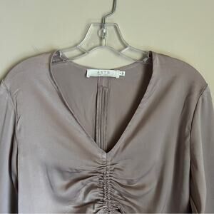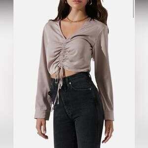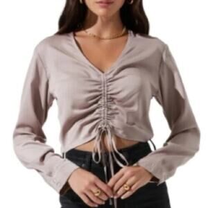 ASTR the Label Mushroom V-Neck Ruched Long Sleeve Cropped Blouse Size Medium