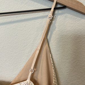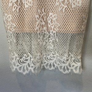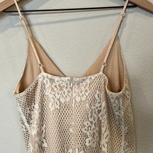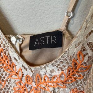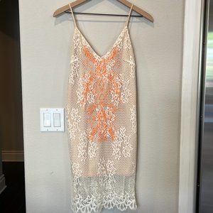 ASTR the Label Nude and Orange Lace Overlay V Neckline Slip Dress