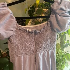 Periwinkle blue off the shoulder puff sleeve dress from ASTR the Label. Size large. Midi dress. Split hem. Worn once for a wedding.
