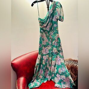 ASTR the Label one shoulder floral midi dress with beautiful flowy hem, size XS in EUC (only worn once with no visible signs of wear). This is a beautiful dress that can be worn for any number of special occasions- fancy date night, showers, weddings, garden parties, etc. it’s absolutely stunning.