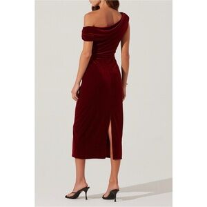 ASTR the Label One-Shoulder Velvet Midi Dress Wine