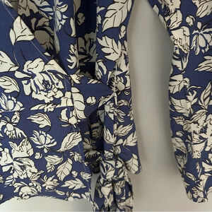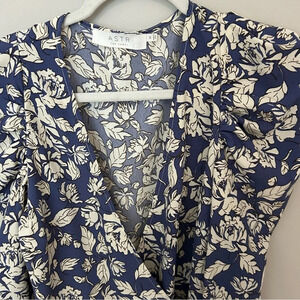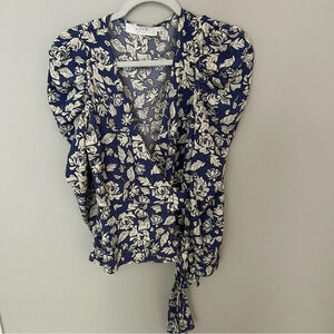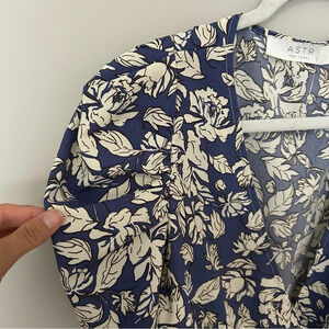 ASTR the Label Periwinkle Floral Puff Sleeve Wrap Blouse Size Medium