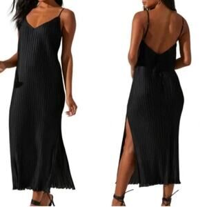 ASTR the Label Pleated Black Midi Dress V-neck Slit Cocktail Maxi Size M