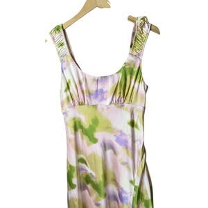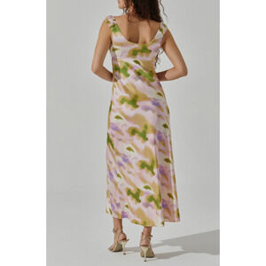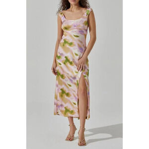 ASTR the Label Printed Satin Midi Dress Watercolor Scoop Neck Sleeveless Medium