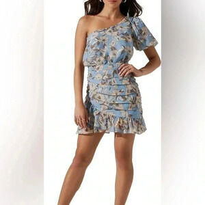 ASTR the Label REVOLVE Floral One-Shoulder Ruffle Dress Small