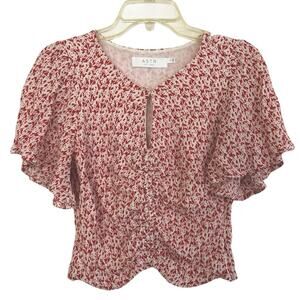 ASTR the Label Red Orange White Ditsy Keyhole Flutter Sleeve Top Womens Small